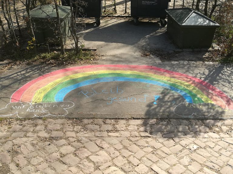 Dieser schöne Regenbogen mit dem Wunsch „Bleib gesund“ sowie dem Hinweis „Wir bleiben zu Hause“ ist am Eingang des Schulhofes der Schule Königstor zu sehen. Gemalt wurde er während der…
